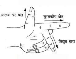 2. चुंबकीय क्षेत्र में धारावाही चालक पर बल की दिशा: फ्लेमिंग का वाम हस्त नियम