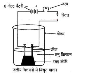 हम देखते हैं कि बल्ब नहीं जलता। अत: ग्लूकोज रबड़ कॉर्क और एल्कोहॉल विलयनों में विद्युत चालन नहीं होता।