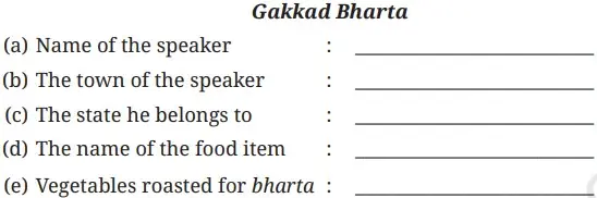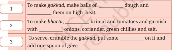 1. Listen to the description of gakkad bharta and complete the notes given below. (refer to page 162 for transcript)