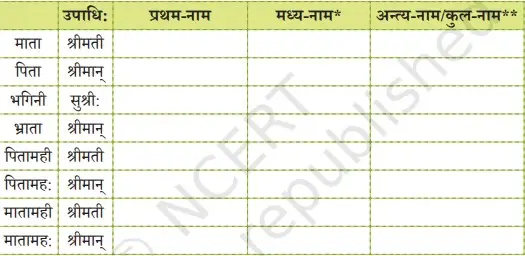 ६. मित्राणां पूर्ण-नामानि लिखन्तु ।