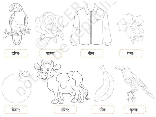 ३. उचितवर्णेन सह शब्द योजयन्तु । (सही रंग के साथ शब्दों को जोड़ें:)