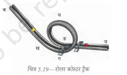 11. एक रोलर कोस्टर का ट्रैक चित्र 5.19 में दिखाए गए आकार में बनाया गया है। एक गेंद बिंदु ‘क’ से प्रारंभ होती है ‘च’ और बिंदु से निकल जाती है। रोलर कोस्टर पर गेंद की गति के प्रकार और ट्रैक के संगत भागों की पहचान कीजिए।