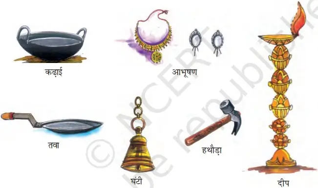 (ख) विभिन्न खनिजों से बनी कुछ अन्य वस्तुओं के चित्र बनाएँ।
