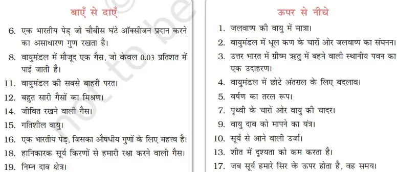| 7. पृथ्वी के चारों ओर वायु की चादर। | Atmosphere |