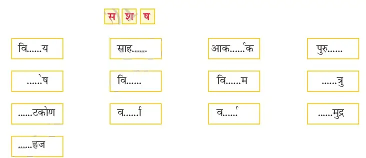 नीचे लिखे शब्दों में सही अक्षर भरो-