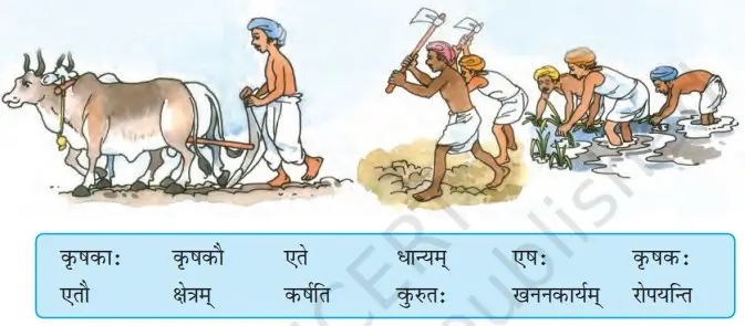 (क) एषः कृषकः क्षेत्रम् कर्षति।