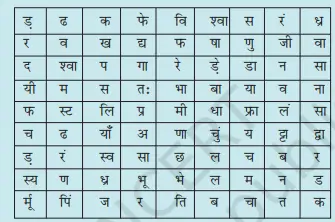 8. दी गई पहेली के प्रत्येक वर्ग में जीवों के श्वसन से संबंधित हिंदी वर्णाक्षर अथवा संयुक्ताक्षर दिए गए हैं। इनको मिलाकर जीवों तथा उनके श्वसन अंगों से संबंधित शब्द बनाए जा सकते हैं। शब्द वर्गों के जाल में किसी भी दिशा में, ऊपर, नीचे अथवा विकर्ण में पाए जा सकते हैं। श्वसन तंत्र तथा जीवों के नाम खोजिए।