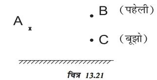 उत्तर: हाँ, स्थिति B से पहेली A पर स्थित वस्तु के प्रतिबिंब को देख सकती है। ऐसा इसलिए, क्योंकि A के प्रतिबिंब से परावर्तित किरणें B की स्थिति तक पहुँच सकती हैं, और पहेली की आँखें इन किरणों को पकड़ सकती हैं।