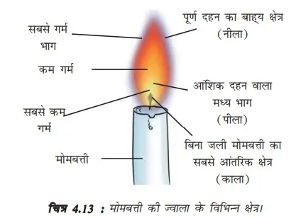 • ज्वाला का बाहरी नीला भाग सबसे ज्यादा गर्मी देता है