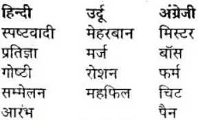 प्रश्न 6. निम्नलिखित शब्दों का उच्चारण करते हुए हिंदी अंग्रेजी और उर्दू के शब्द छाँटकर लिखिए