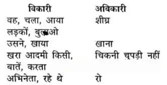 प्रश्न 9. निम्नलिखित वाक्यों में से विकारी एवं अविकारी शब्दों को रेखांकित कीजिए
